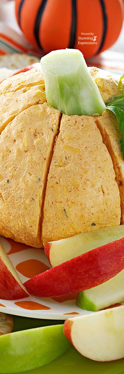 Appetizers, FOOD & BEVERAGES, Holiday Recipes, Recipes, Thanksgiving Recipes  Pumpkin-Shaped Cheese Ball