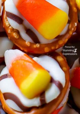 An easy Halloween treat! These salty sweet candy corn pretzel treats are so simple to make.
