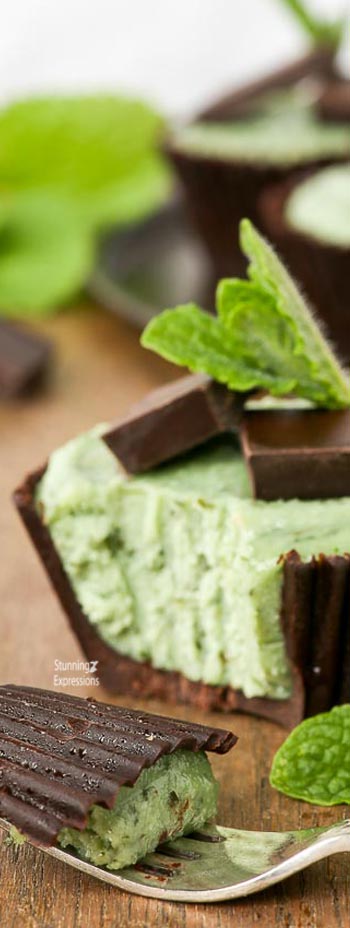 1. Combine all mint “cheesecake” filling ingredients in a blender and blend until smooth. Transfer the mixture into a piping bag and pipe into the frozen chocolate cups, until each cup is full up to its edge. (You can also use a spoon to transfer the filling into the cups.) Freeze the vegan cheesecake bites for at least 1/2 hour. Carefully remove the cupcake cases. I’ve found it easiest to first tear away the sides and then remove the cupcake case bottom at the end. Freeze again. Take the vegan cheesecake bites out of the freezer for at least 10 to 15 minutes before serving. Enjoy drizzled with more chocolate, with whipped coconut cream, or as they are. The vegan cheesecake bites keep well in the freezer for up to about 2 weeks. (No way, I give them a day.)