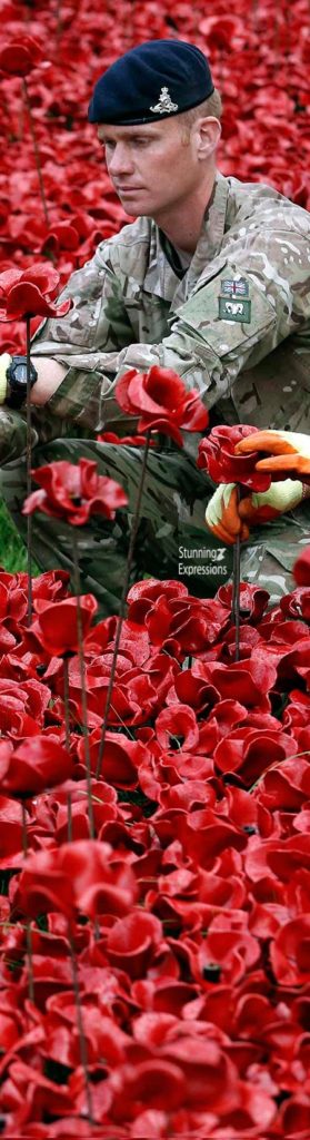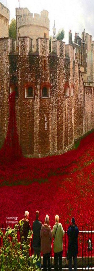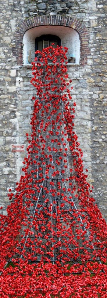 England – Tower of London – Blood Swept Lands and Seas of Red – was a work of installation art placed in the moat of the Tower of London, England, between July and November 2014, commemorating the centenary of the outbreak of World War I. It consisted of 888,246 ceramic red poppies, each intended to represent one British or Colonial serviceman killed in the War. The artist was Paul Cummins, with setting by stage designer Tom Piper. The work’s title was taken from the first line of a poem by an unknown World War I soldier.