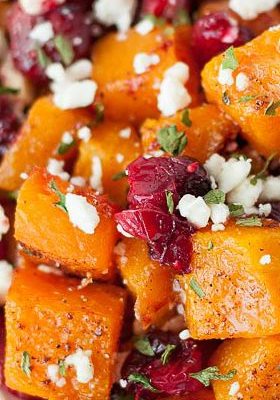 Honey Roasted Butternut Squash with Cranberries and Feta