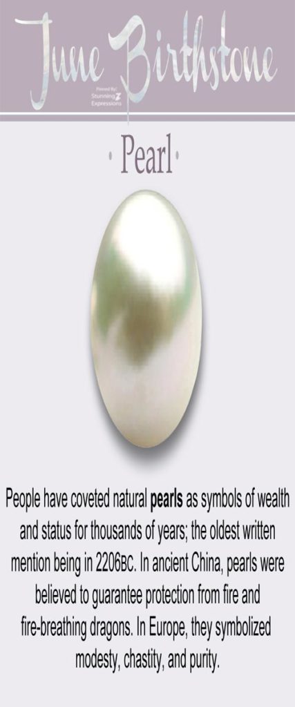 Pearl and Alexandrite are two of the three birthstones for the month of June; the third is the Moonstone. A Pearl symbolizes love, happiness and success, and is the most popular of the three. In Europe, Pearls were widely used as medicine until the 17th century. And according to South Asian mythology, Pearls were dewdrops that fell into the sea from heaven.