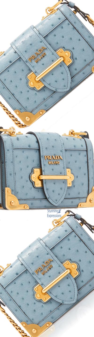 #Prada 2019 Blue Ostrich Cahier Shoulder Bag